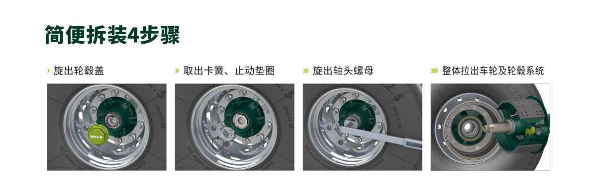 ● VALX輪轂系統(tǒng)拆裝便捷,簡(jiǎn)單4個(gè)步驟就能實(shí)現(xiàn)剎車(chē)片的更換。