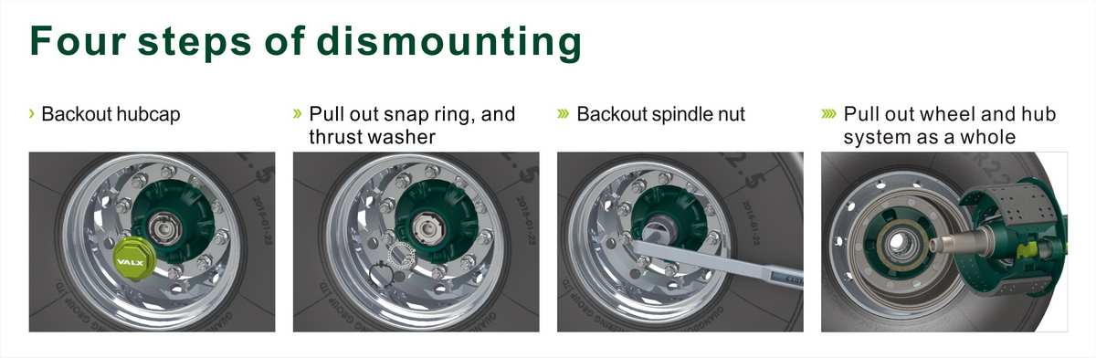 The perfect combination of innovation and manufacturing technology● Manufacturing precision of the wheel hub is higher than the European standard, which ensures precise preloaded bearing and the bearing load-carrying uniform. When remove the wheel hub, the circlip keeps the oil seal and bearing within the hub together to ensure the integrity and cleanliness of the wheel component. ● VALX brake system designed by European famous brake expert professor Andrew has sensitive braking efficiency, stable mechanical and thermal properties, low peak stress and low noise, etc.● The oil seal developed by SKF dedicated for VALX axle is featured with long life and high temperature resistant performance, which can prevent effectively the dust and moisture from getting into the wheel inside.● High precision bearings with high quality fully synthetic extreme pressure grease (working temperature range - 40 ℃ ~ + 170 ℃), improves bearing life and reduces the cost greatly.